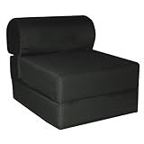 Children's Studio Chair Sleeper Jr. Twin. Doesn’t your child need a functional furniture piece that doesn’t take up a lot of space? Our Child Studio Chair Sleepers are the ideal solution. Use it as a chair, or simply unfold it into a super plush mattress. Kids love to use it for taking naps, reading a book, overnight camping or TV time. With so many uses and expressive colors to choose from, it’s an essential furniture piece for children. Item is lightweight for easy handling. Store away easily. Recommended Seating 1 to 10 years old. Seating Dimensions: 24"W x 28 1/2"D x 23 1/2"H. Sleeping Dimensions: 64"L x 24"W x 12"H. Finish: Black. Material: Poly-Cotton and Polyurethane Foam. Item is made in USA.